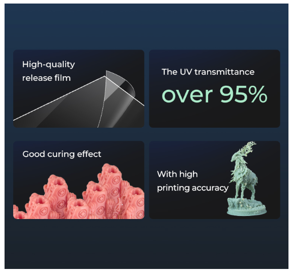 The Creality Halot Mage FEP Film is known for its anti-stick properties, preventing unwanted adhesion between the cured resin and the film surface. This feature not only simplifies the post-printing process but also extends the lifespan of the film, contributing to a more cost-effective and sustainable 3D printing experience.