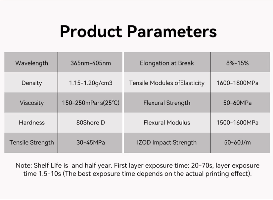 【low viscosity & good fluidity 】 Low resin viscosity means good fluidity in the printing process, which greatly improves the printing success rate. upgraded water washable resin has a longer shelf life to 1 and a half years to help the resin to store longer and safe use.